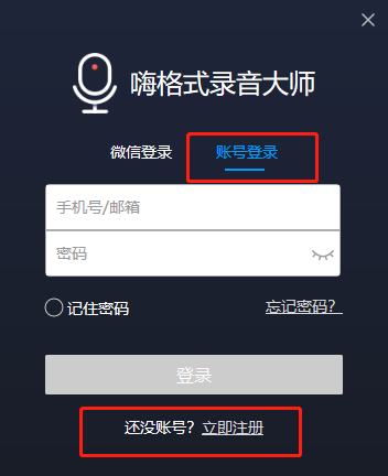 点击【登录】-【账号登录】-【立即注册】按钮,可以用手机号或者邮箱注册软件账号。