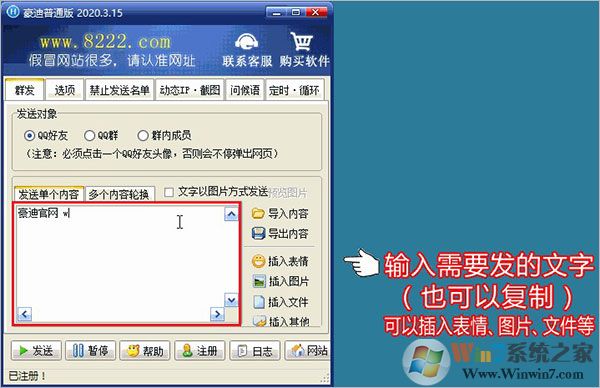 2、输入需要发送的消息内容,也可以粘贴或从文本文件导入;