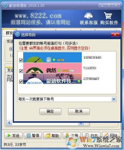 5、如果登陆了多个QQ会出现选择窗口,在需要发的QQ前面打钩。
