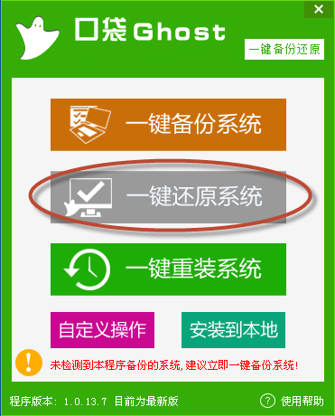 口袋Ghost一键还原系统功能帮助大家实现快速、准确实现还原WIN7系统,具体操作大家可以按照下面的介绍一步一步进行.