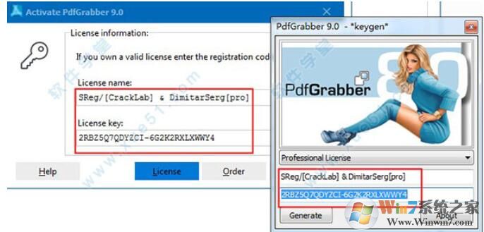 1、首先安装原版软件,之后打开注册机“Pdf.Grabber.v.9.kg.by.SReg.exe”生成注册码,将注册码复制到软件上然后点击license