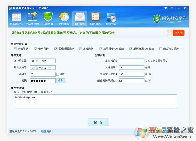 设置告警通知邮件发送方式,及时了解服务器异常情况,自由选择不同类型告警内容、允许设置邮件发送频率、大小,支持多邮箱接收机制。