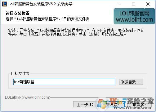4、图上目录路径是默认的,选择自己电脑上LOL国服的安装位置