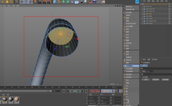 3、接下来,为了避免穿帮,将水龙头的出水处进行挤出操作,并将其顶面删掉。