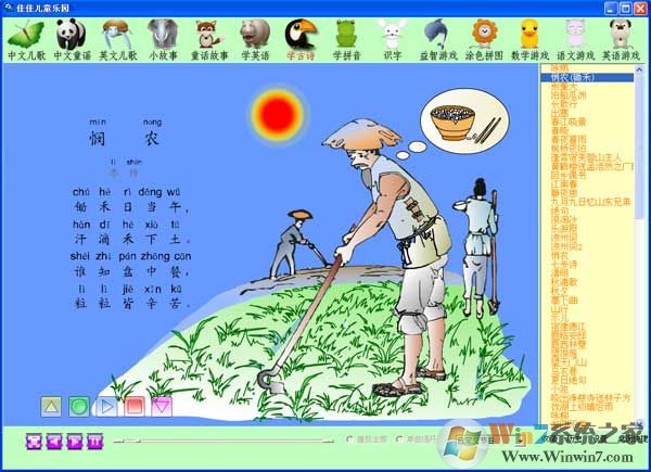 佳佳儿童乐园是一款专为学龄前儿童研发的启智软件,拥有童话故事,中文童谣,成语故事,小故事,学古诗,百科常识,学拼音,语文游戏等特色单元,既能促进孩子正确世界观的培养,也能丰富小朋友的指示,启迪智慧,锻炼动脑能力,使孩子按照大脑发展的规律得到适宜的锻炼,在适当时期学到应会的本领,从而开发孩子的潜能。