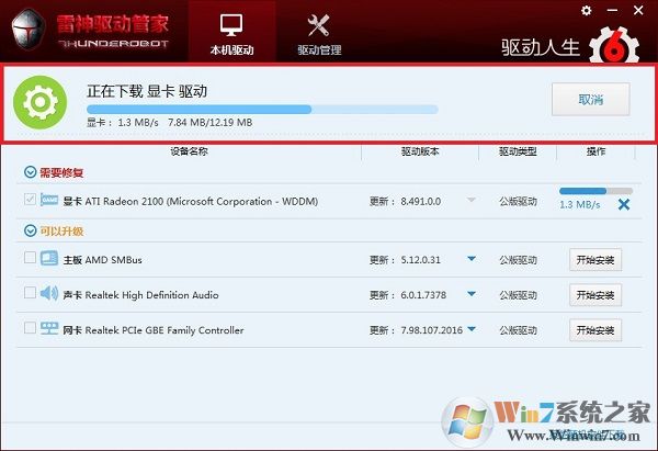 1、进入软件后将自动检测您的设备上需要修复的驱动和可以升级的驱动供用户选择,点击立即修复软件将自动修复
