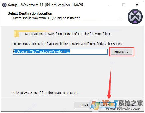 2、双击waveform_64bit_v11.0.26.exe运行安装,点击browse可以自由选择安装路径: