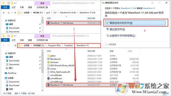 5、将Waveform 11 (64-bit).exe复制到安装目录中,点击替换目标中的文件: