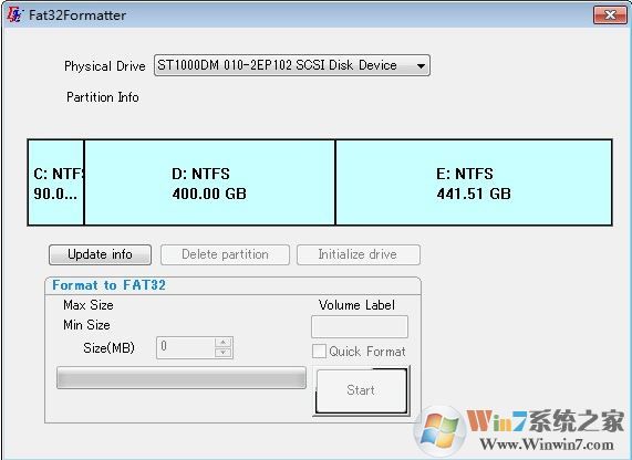 需要将容量较大的硬盘格式化成FAT32格式的话那么快来使用winwin7给大家分享介绍的这款Fat32Format v1.1绿色版吧!