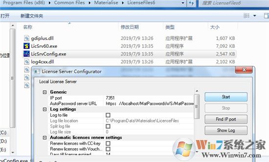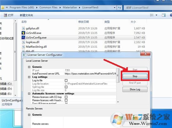 5、打开“C:\Program Files (x86)\Common Files\Materialise\LicenseFiles6”运行”LicSrvConfig.exe“,点击Stop停止本地许可证服务器