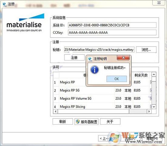 13、完成后,点击浏览,载入修改后的magics24.matkey许可并点击注册