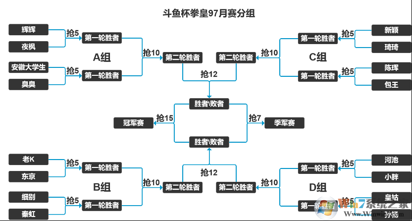 【赛制抽签】上届月赛四强作为种子选手分配到ABCD组,红包抽签决定顺序