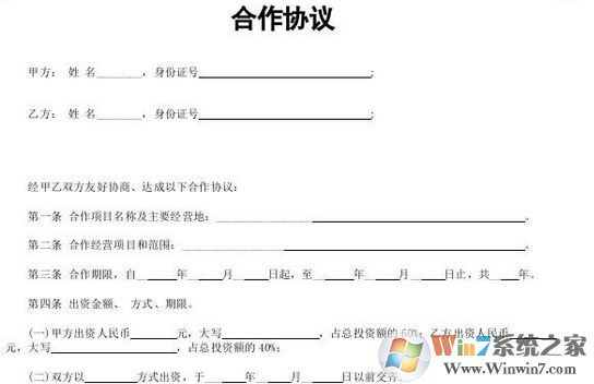 如果你需要和别人一同经商,需要立一份合同的话那么可以使用winwin7带给大家的这款合伙经营协议书模板,只需做适当的修改即可使用,为大家提供 便捷!