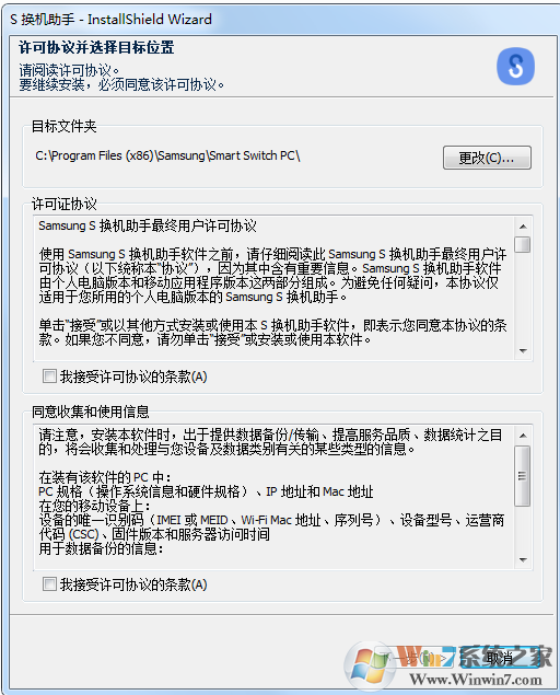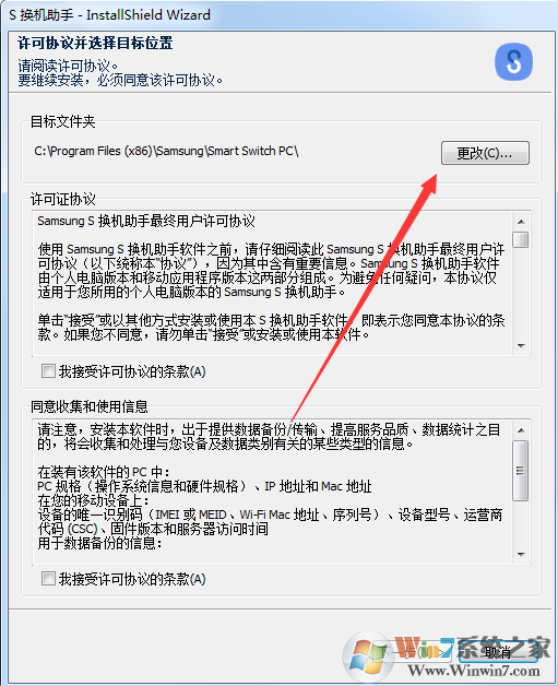 1、下载三星S换机助手软件安装包,双击打开下载的.exe文件,进入软件安装界面