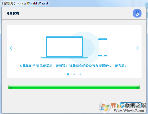 3、三星S换机助手软件正在安装中,我们耐心等待安装进度条完成就可以了。