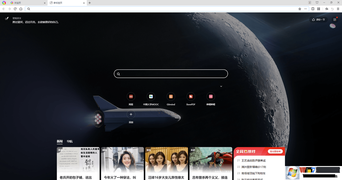 打开360极速浏览器X,整个界面非常的清爽干净。标签页、搜索框、背景壁纸、默认的几个网址推荐和新闻推荐,没有冗余的元素,也没有弹窗广告。整个体验是沉浸式的,我是非常喜欢这种风格的。因为没有“花里胡哨”的内容,可以愉快开始我的浏览器之旅。