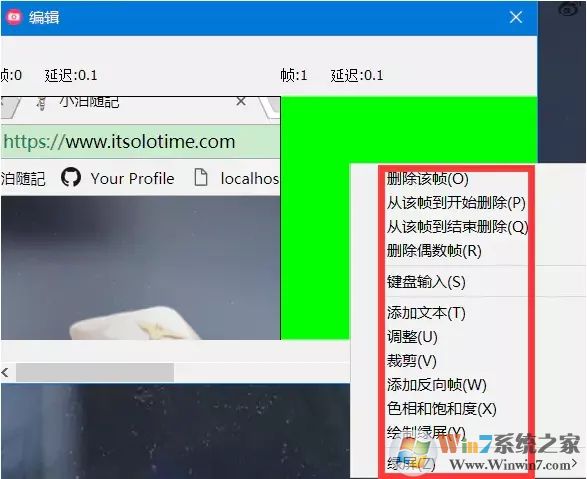 5、编辑状态下可查看每一帧,可以删除帧、增加减少当前帧延时。