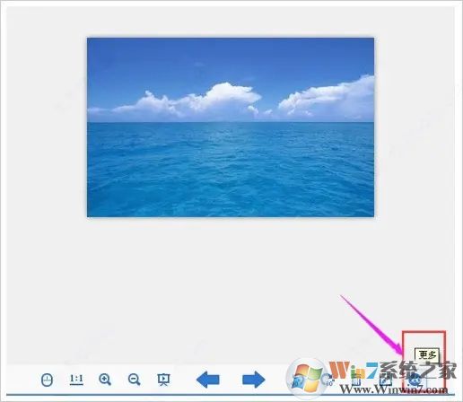 2、我们把鼠标放在页面的最下方,这时会弹出2345看图王的工具栏,在工具栏的右边我们看到一个向上的箭头(更多)