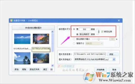 7、看到左边显示有共5张待处理的图片,我们看到在批量图片转换页面的右边有修改图片尺寸的方式,见下图标出区域;