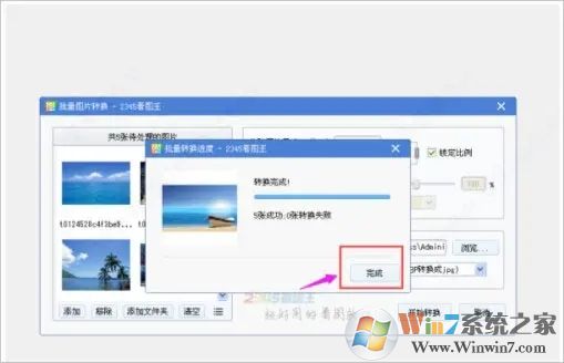 10、弹出转换完成的页面,我们点击“完成”,弹出图片另存的文件夹,在文件夹中我们看到5张图片的宽现在都是500。