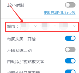 6、如果要更改城市时,只需点击箭头标记处的设置