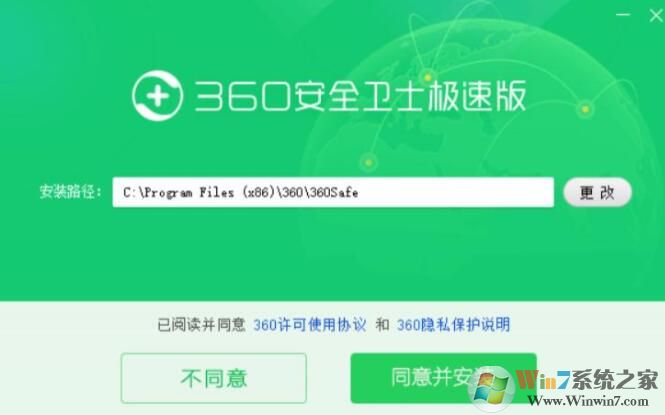 1、安装界面更加简洁:在一开始的安装界面,360 安全卫士极速版没有隐藏功能选项,只有选取安装路径,并进行安装。