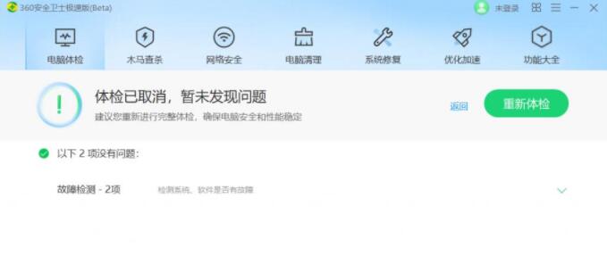 3、功能没有精简:点击任意一项,会跳转到第二界面,可随意切换功能,与原版 360 安全卫士一致。