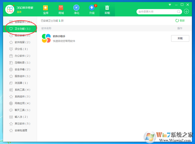 3.软件管家--【卸载】tab增加“卫士功能”分类,