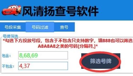 10、转换到手机号码过虑频道,依据要求设定包括与不包括关联,随后在要查寻的号码段前边发票勾选,点击刷选号牌。