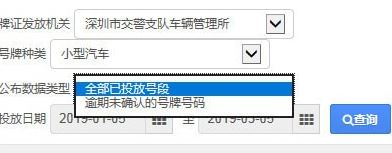 4、挑选后可设定号牌类型,数据类型,推广时间。设定好之后点击查寻。