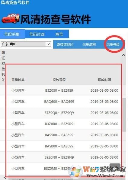 5、第四步点击查寻之后正下方会显示信息号码段,显示信息后点击收集号码段。