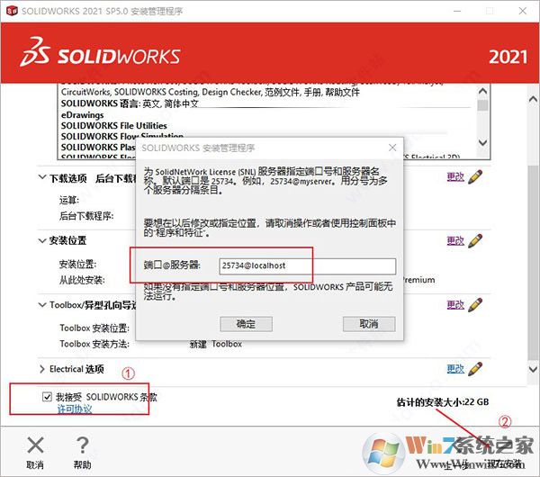 9、在弹出窗口的端口@服务器中输入:25734@localhost,在弹出的无效窗口直接点确定即可;