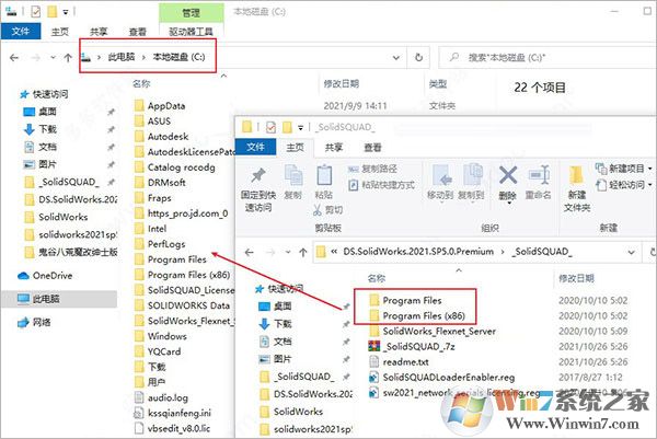 10、安装完成后不要运行SolidWorks,将“Program Files”和“Program Files(x86)”两个文件夹中的破解文件替换对应的文件;