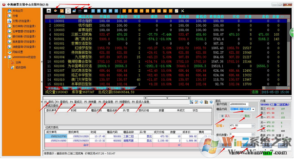 2、电脑客户端交易界面。(下图所有用红色箭头标示的地方大家都会经常用到,不熟悉的朋友请用鼠标点击多看看。)