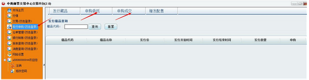 4、申购(鼠标双击发行申购,在指定的申购日才可以进行申购,查询到相应的申购藏品)