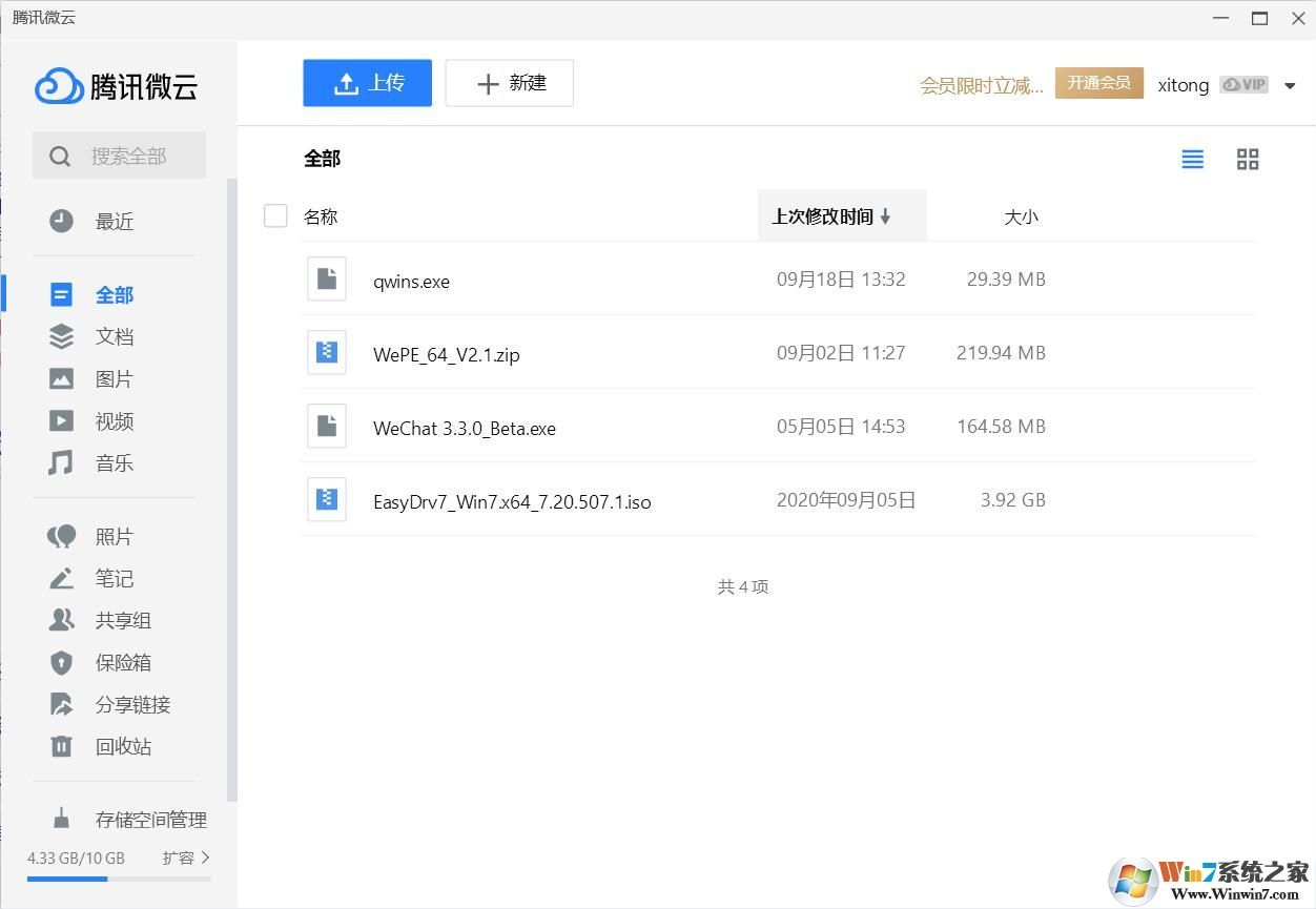 三、登陆后用户可以随意上传和下载自己的文件,软件有10G的免费使用盘。