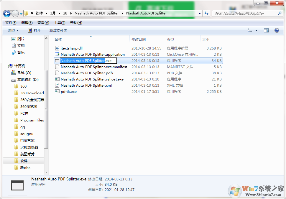 2、解压Nashath Auto PDF Splitter软件,运行文件