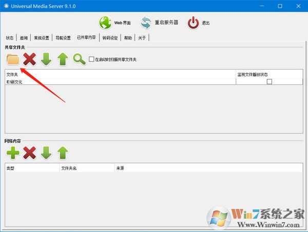 需要配置的是下图,点击已共享内容标签页,选择文件夹按钮,添加你需要看的文件夹