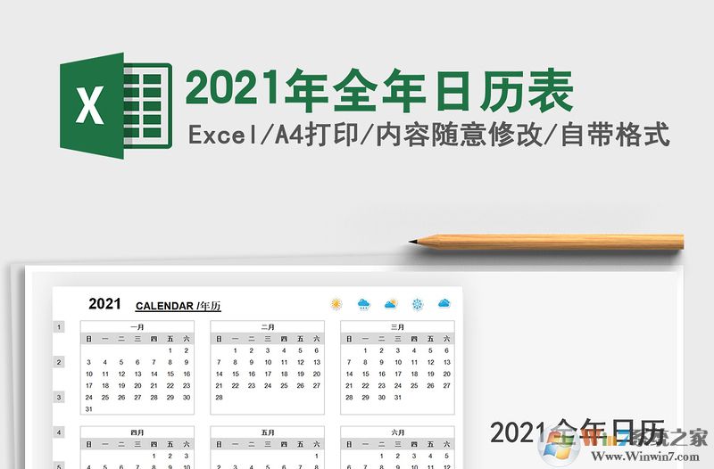 模板三:2021年全年日历表