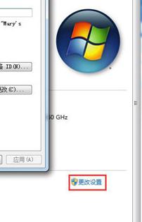 3、接着右击“计算机”,选择“属性”,点击“更改设置”,将计算机全名复制下来。