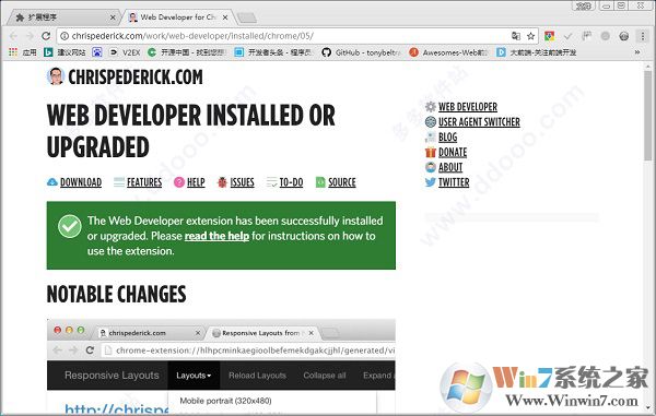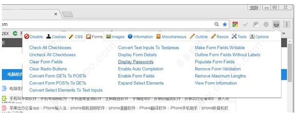 Web Developer集成了各种各样的 Web 开发工具,网络程序的开发具有强大的辅助功能,比如调试CSS、清理Cookie等。安装之后会在浏览器工具栏添加一个齿轮状的小图标,点击小图标之后就可以看到大量的 Web 开发工具,是网页开发人员必备的 Chrome 开发者工具扩展插件!