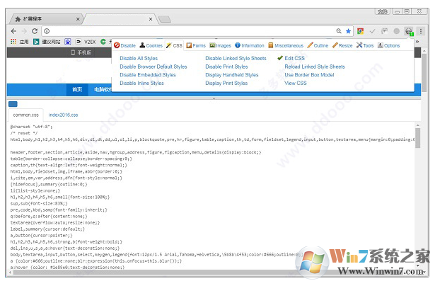 4、同时,还能通过插件的CSS窗口对网页的CSS代码进行编辑,当然这个编辑是只对该浏览器有效的。