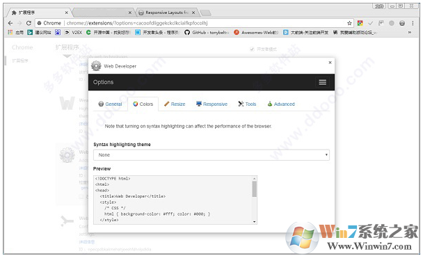 6、若是想要对该插件的设置进行一些调整,可以右键点击Web Developer插件图标并选择选项一栏进入设置页面,在该页面中使用者可以对它的颜色样式、尺寸、链接等功能进行设置。