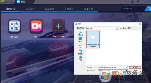 2、安装成功以后,打开模拟器,点击安装本地apk;