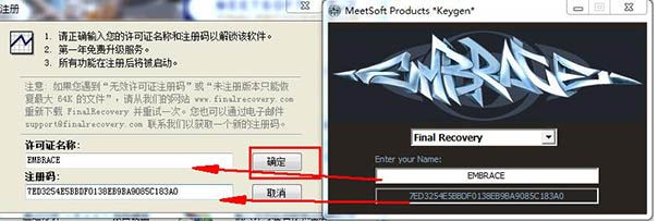 2、打开软件包,运行“keygen.exe”注册机,将注册机上的注册码和许可证复制到软件注册窗口,点击确定;