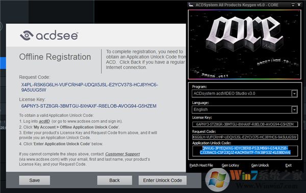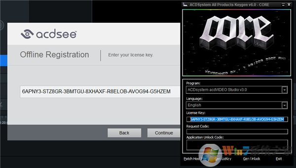 3、运行注册机,选择ACDsystem acdVIDEO Studio v3.0,复制Lincese Key