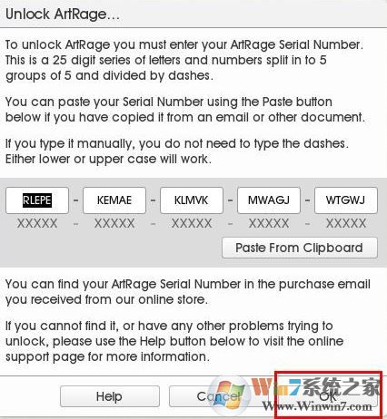 2、接着运行桌面快捷方式打开软件,弹出注册码输入界面,输入注册码【RLEPE-KEMAE-KLMVK-MWAGJ-WTGWJ】,点击OK。如图: