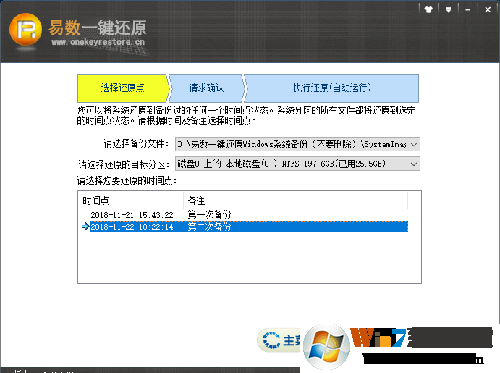 相应的,使用以易数一键还原软件还原系统时,用户可以将系统还原到任意的时间点,极大的提高了这款软件的实用性。