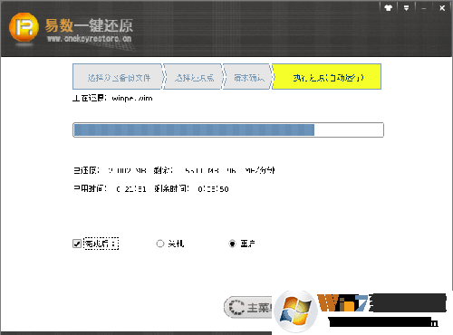 该程序的还原速度比备份速度还要快!如果您没有修改还原时默认的还原完成后的操作选项,软件还原完系统后,又会自动重新启动到Windows。