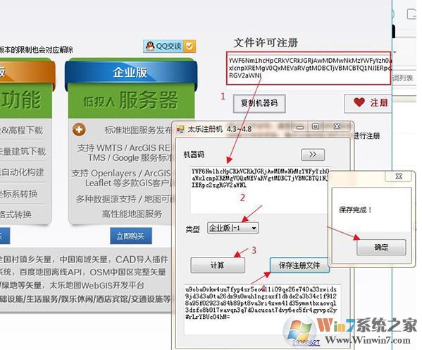 1、首先我们将从winwin7站点中下载好的压缩包解压,并运行主程序安装完成,运行软件同时运行注册机,将机器码复制到注册机上选择类型然后点击计算在点击保存;
